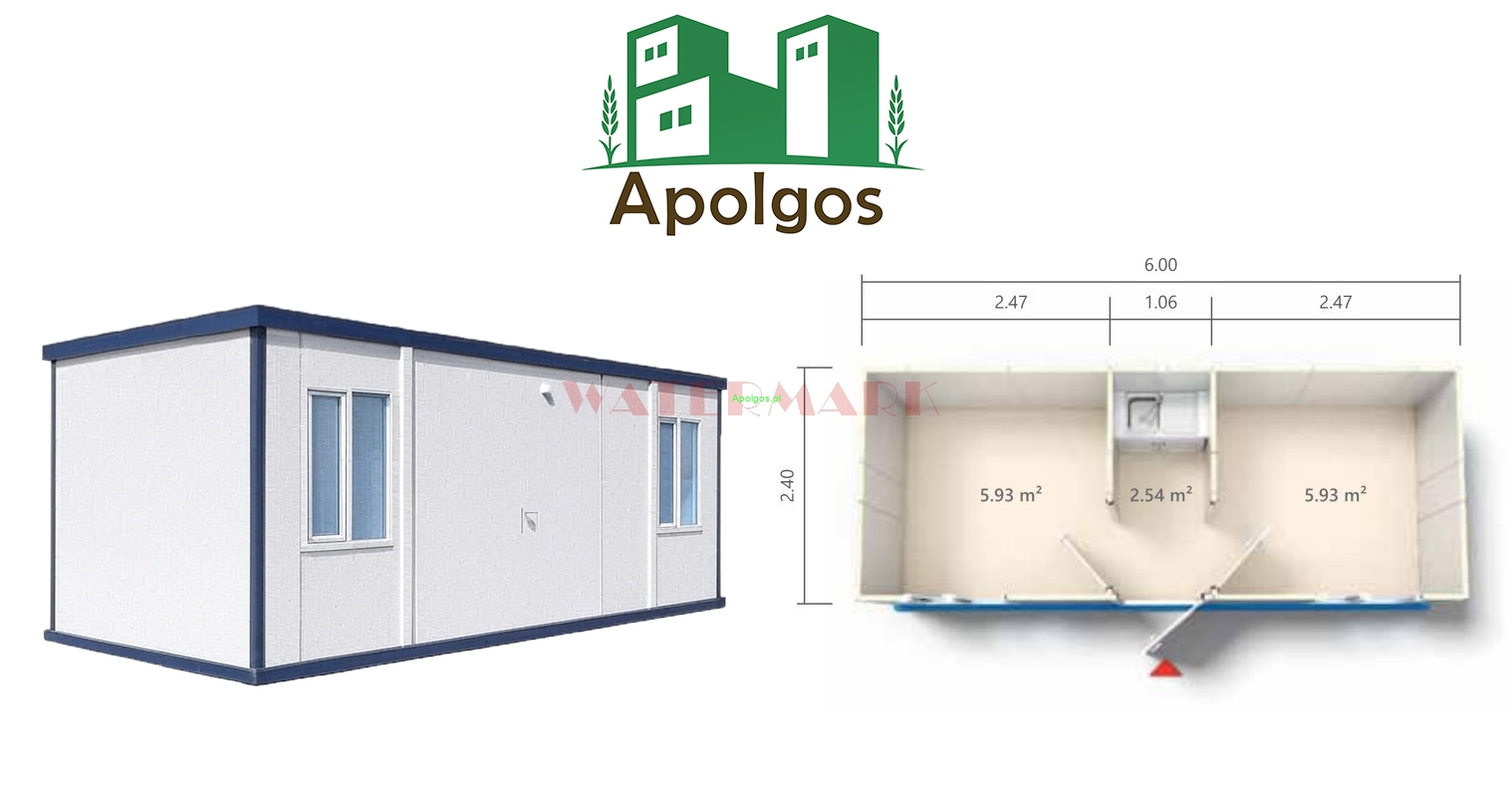 Kontener mieszkalny ramowy i sztywny o wymiarach 600 x 240cm, powierzchnia 14,4m2