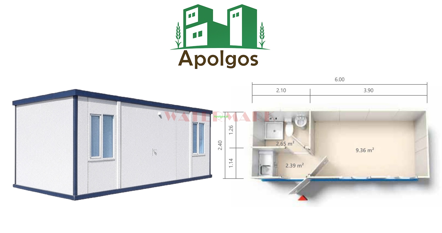 Kontener mieszkalny ramowy i sztywny o wymiarach 600 x 240cm, powierzchnia 14,4m2