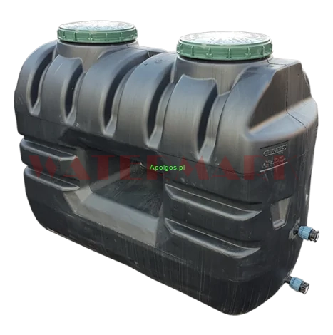 Monolityczny zbiornik na wodę deszczową o pojemności 1000 litrów, w kolorze czarnym. Wykonany z polietylenu wysokiej gęstości (PEHD) metodą wytłaczania z rozdmuchem tworzyw sztucznych. Przeznaczony do montażu naziemnego przy budynkach jednorodzinnych, gospodarczych lub użytku publicznego. Idealny do zbierania i magazynowania wody deszczowej. Na przedniej części zbiornika znajdują się dwa przyłącza Ø32 mm, umożliwiające łatwe wykorzystanie zgromadzonej wody bez dodatkowych systemów pompowych. Dwie nakręcane pokrywy o średnicy Ø400 mm zapewniają łatwy dostęp do wnętrza zbiornika i ułatwiają serwisowanie.