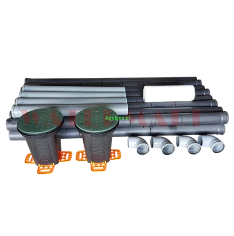 Gotowe zestawy złożone z osadnika gnilnego AB oraz niezbędnych akcesoriów do wykonania przydomowej oczyszczalni ścieków z rurami drenażowymi. Zestaw jest dostosowany do warunków gruntowych dobrze przepuszczalnych.