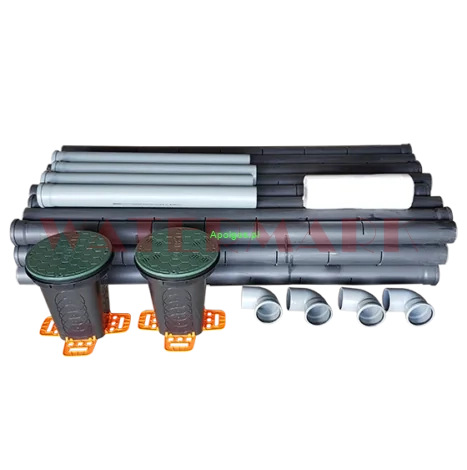 Gotowe zestawy złożone z osadnika gnilnego AB oraz niezbędnych akcesoriów do wykonania przydomowej oczyszczalni ścieków z rurami drenażowymi. Zestaw został dopasowany do montażu w warunkach gruntowych dobrze przepuszczalnych.